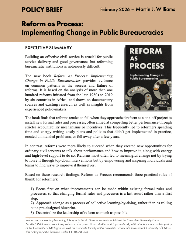Click here for a short policy brief on my book Reform as Process: Implementing Change in Public Bureaucracies, February 2026.